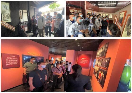 此次主题党日活动在淮安市盱眙县黄花塘新四军军部纪念馆拉开了序幕。黄花塘是当年中共中央华中局暨新四军军部所在地,新四军十年战斗的历程里,军部在黄花塘谱写了两年又八个月的光辉篇章。陈毅、张云逸等老一辈无产阶级革命家在艰苦卓绝的条件下,为民族得解放,为人民谋幸福,在这里运筹帷幄,为争取抗日战争全面胜利作出了历史性贡献。跟随讲解员的步伐,大家逐一参观了新四军军史陈列馆和文化艺术馆,珍贵的革命文物直观地展现当年生活的艰辛,战斗的残酷,一幅幅黑白的相片仿佛历史重现……让大家切身感受到“铁军”的光辉战斗历程和老一辈无产阶级革命家的丰功伟绩。