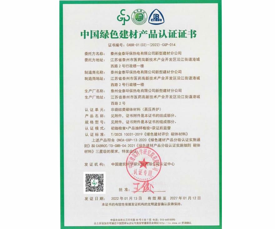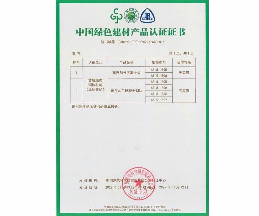 绿色建材产品认证证书