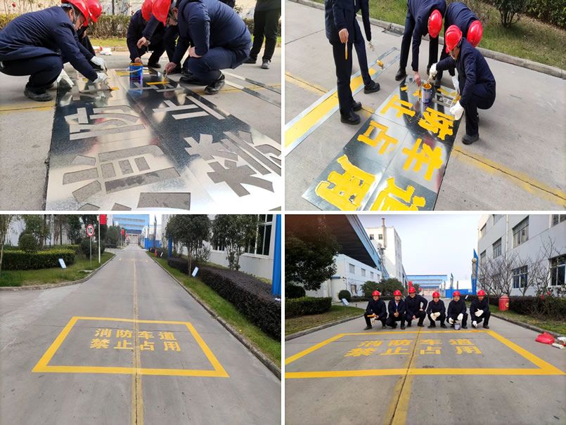 为了进一步细化厂区内部消防通道标牌、标识,加强消防通道的规范化管理,为“生命通道”划线,公司对全厂道路进行了现场确认,同时咨询施工单位,需花费3万多元进行标牌、标识的完善。得知该情况后,公司党支部书记徐振华发起号召,生技部陈卓、许羽、陈飞、戴敏、张国振、黄继军、方嵩、薛中前、李江共9名党员及积极分子积极响应,主动请缨,成立党员志愿服务队,承担起道路划线工作。